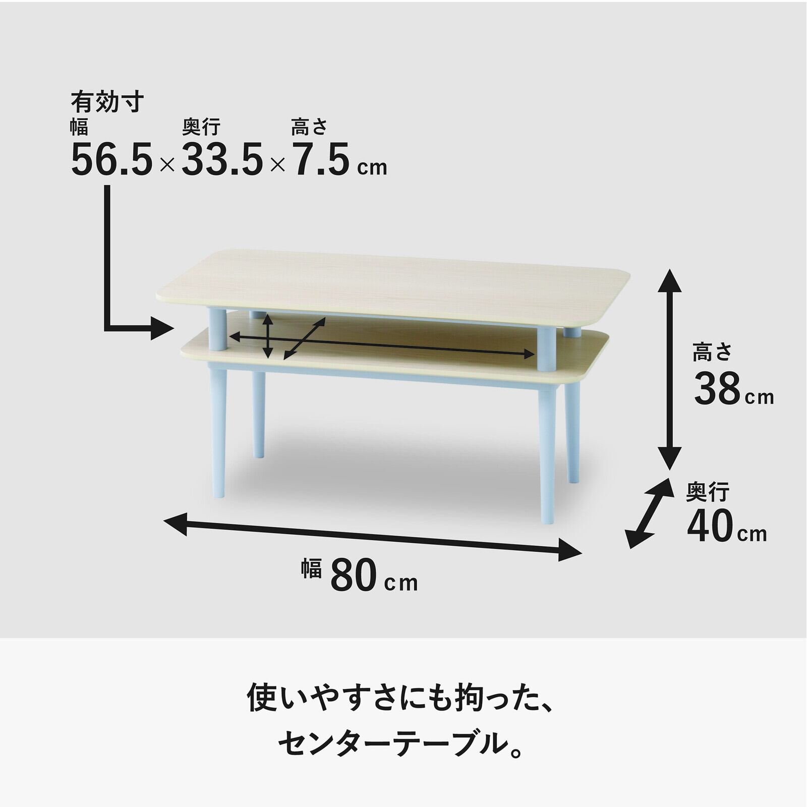 小ぶりで設置しやすいセンターテーブル。天板下の棚板には日々使う小物を収納するのに十分なスペースを設け、使いやすさにも拘りました。