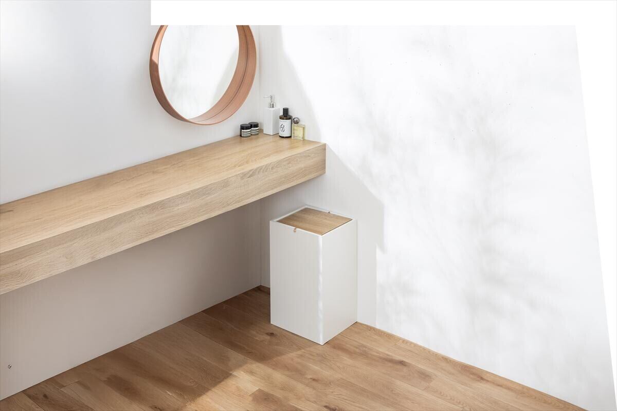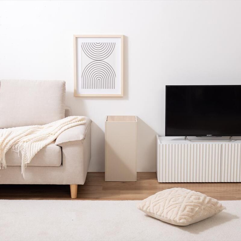 柔らかな色味と木目のバイカラーデザインは、ゴミ箱ながらもインテリアに溶け込みます。