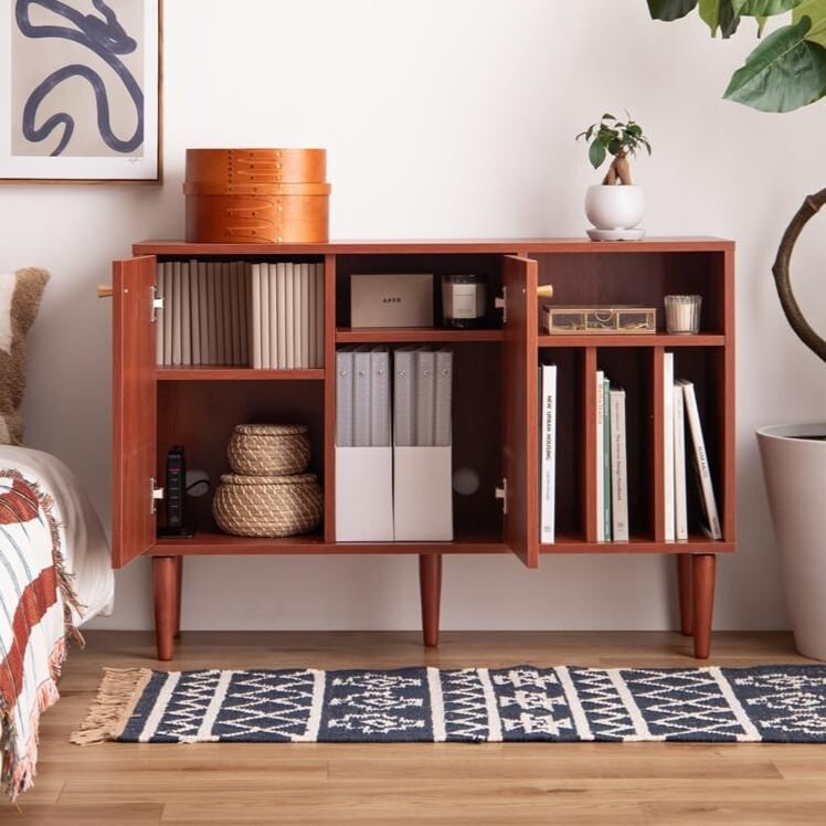 空間に溶け込み、暮らしを上質に彩る本棚付きキャビネット。