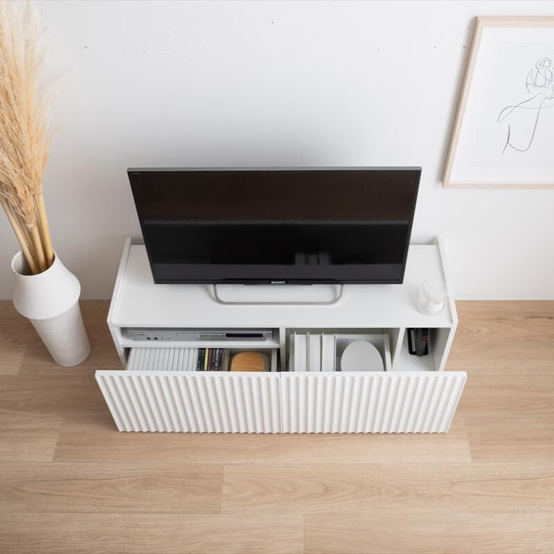 清潔感のあるホワイトと波型扉が魅せる『Sheep(シープ)』シリーズのテレビ台。