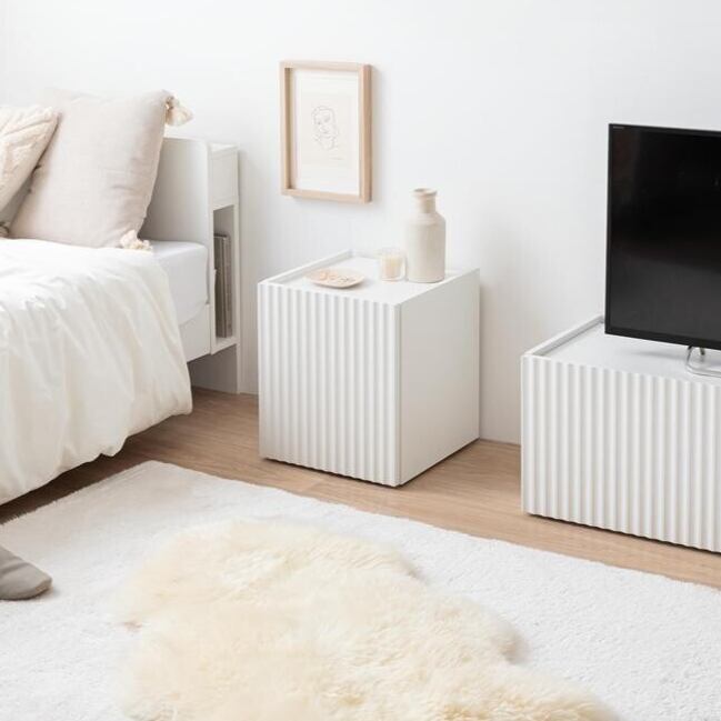 清潔感のあるホワイトと波型扉が魅せる『Sheep(シープ)』シリーズのサイドテーブル。
