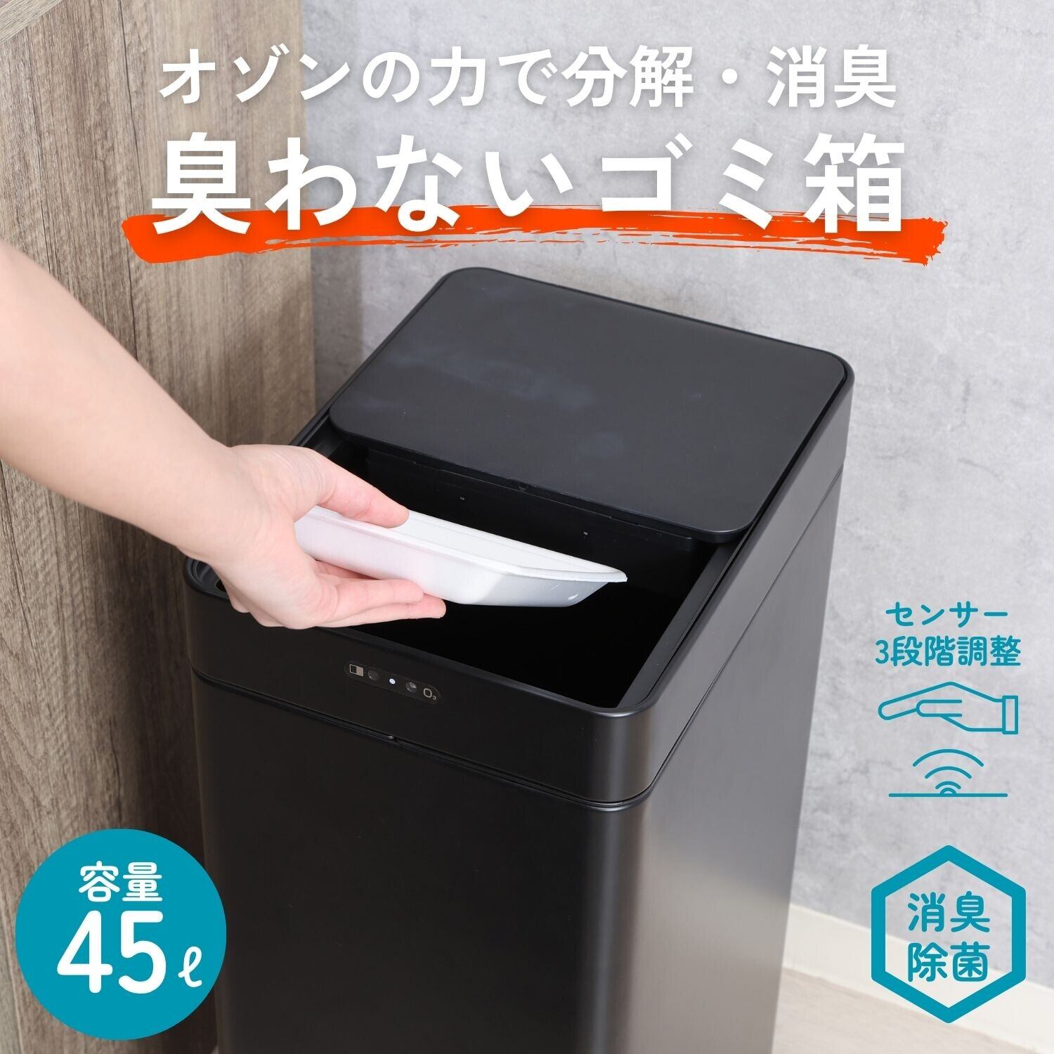除菌消臭センサーダストボックス 45L【不二貿易】★ 家具 ゴミ箱 消臭 インテリア ナチュラル リビング 寝室 LIVING KITCHEN DINING DUSTBOX