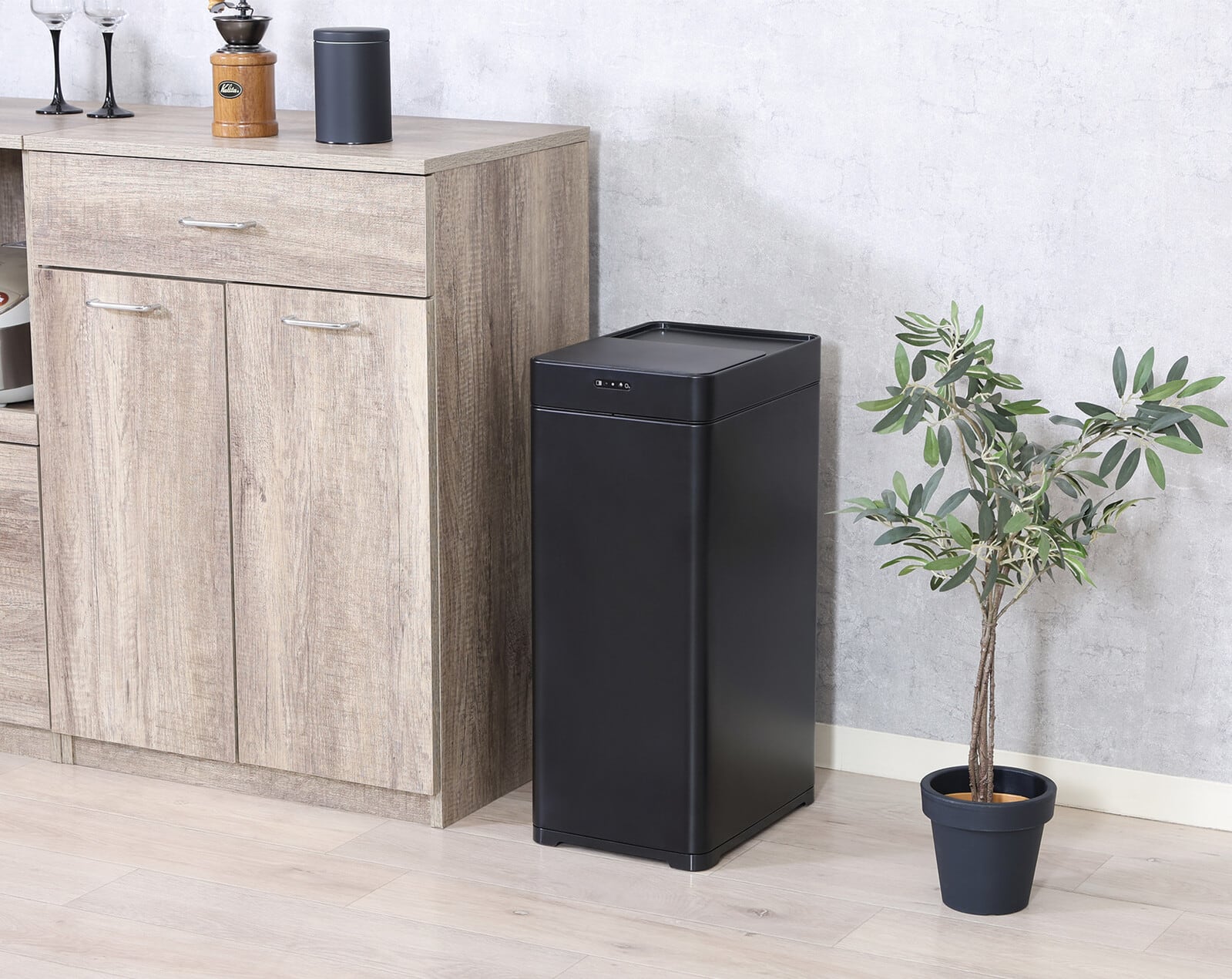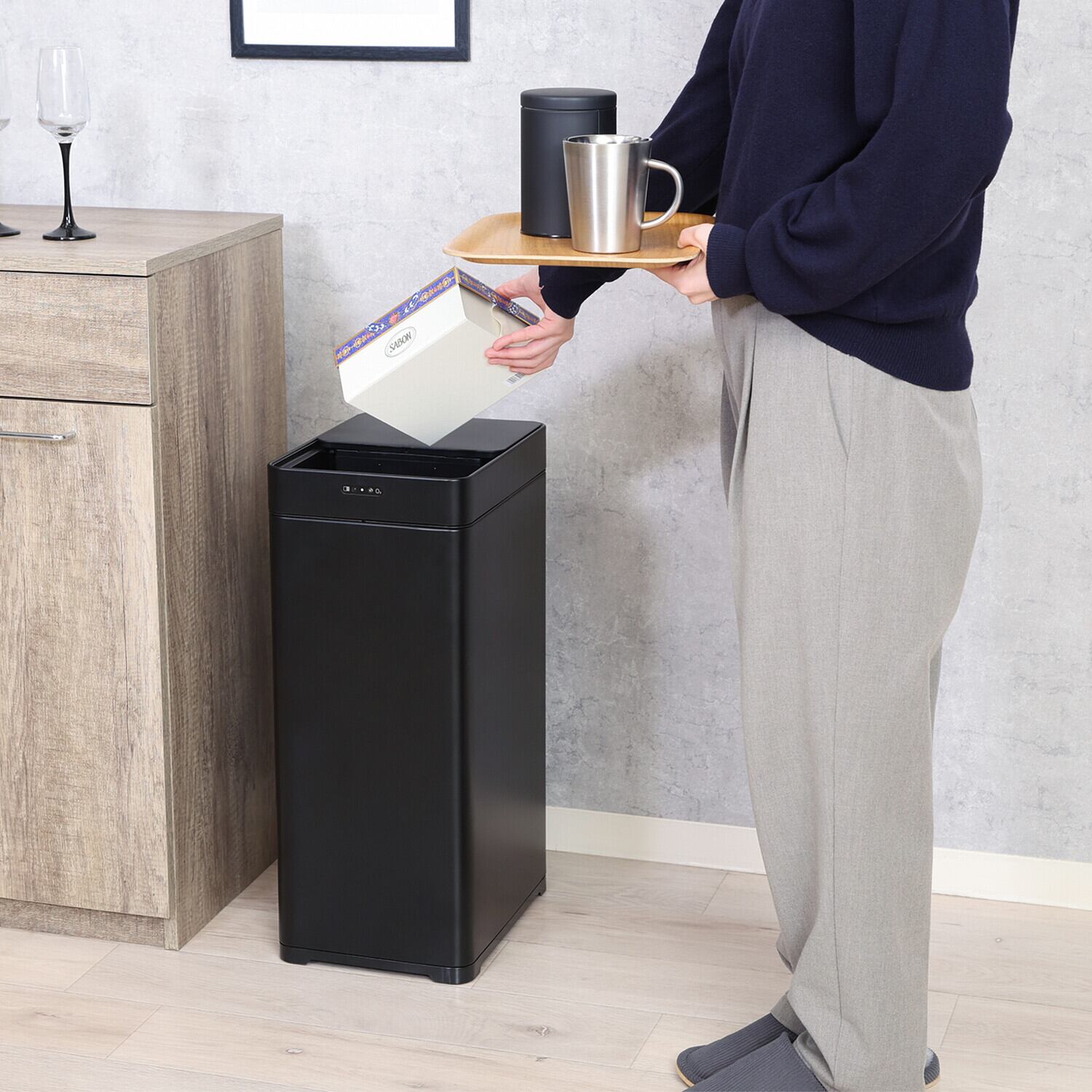 清潔感を感じさせるスッキリとしたデザインの除菌消臭センサーダストボックスです。