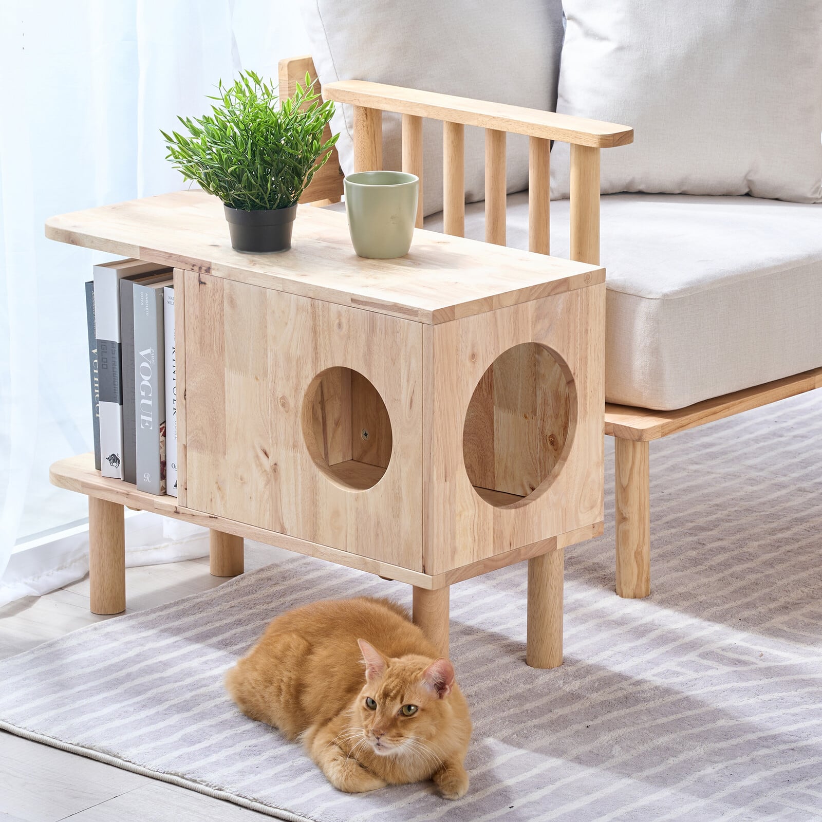 猫ちゃんとスペースを共有できるサイドテーブルです。ちょっとした収納として